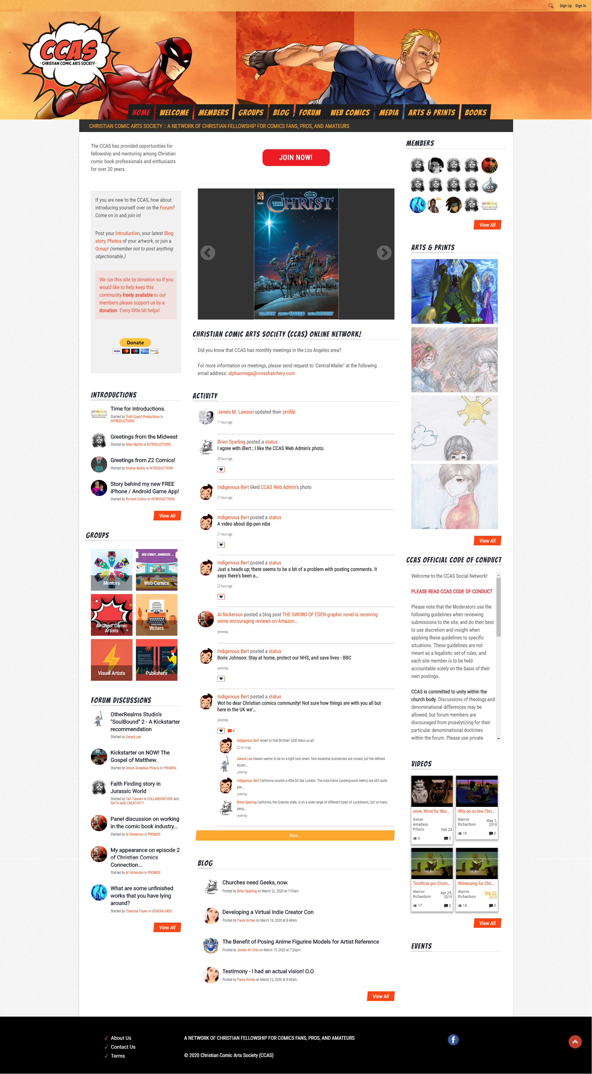 CCAS Christian Comic Arts Society - Ning 3.0 platform Landing Page